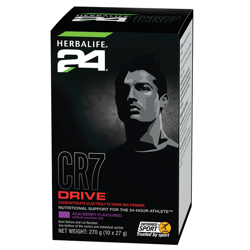 CR7 DRIVE is a carbohydrate-electrolyte solution that is proven to enhance the absorption of water during physical activity and help maintain endurance performance*,